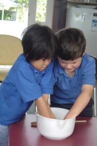 We decided to make our own bread and butter just like Great Grandma. It was hard work but in the end we had lovely damper bread and homemade butter to enjoy.