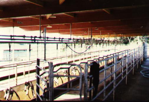 Tim's new cowshed on his block of the farm Each farm now milked 130 cows but due to progress in breeding and feeding the cows, production from the farms had risen by 100 % over the last 30 years . In 2001 Tim and Cathy and Chris and Briona bought 40 hectares across the road. The installation of an underpass has meant that 180 cows can now be milked on each farm